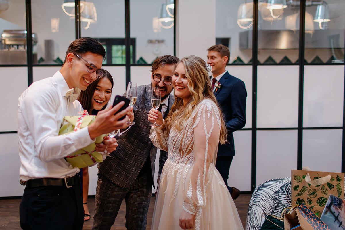 Cały ten dzień otulony był wręcz intymną atmosferą. Z pewnością przyczynił się do tego kameralny charakter imprezy. Ze względu na pandemiczne ograniczenia liczba gości była niewielka, a to tylko spotęgowało intymny charakter i romantyczny nastrój wesela.