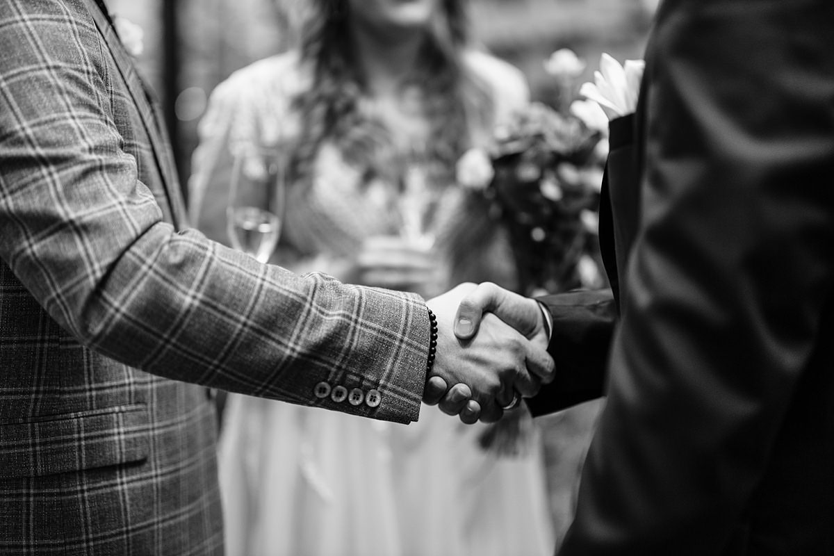 Wreszcie przyszedł ten oczekiwany moment ubierania panny młodej i pana młodego. Długo marzyliśmy, by trafić na ślub, gdzie druhny będą ubrane nie w pastele jak zazwyczaj, a w czarne sukienki. I oto są! Wszystkie druhenki w stylowej czerni. Suknię Ariny zdobiły liściaste hafty, całość z ogromnym bukietem ślubnym robiła niemałe wrażenie. A Przemek wybrał do ślubu kratę i stylowe dodatki.